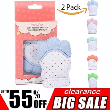 2 Pcs Teething Mitten Teether Glove Silicone Chewing Mitt Soother For Baby Boy Infant Newborn Blue