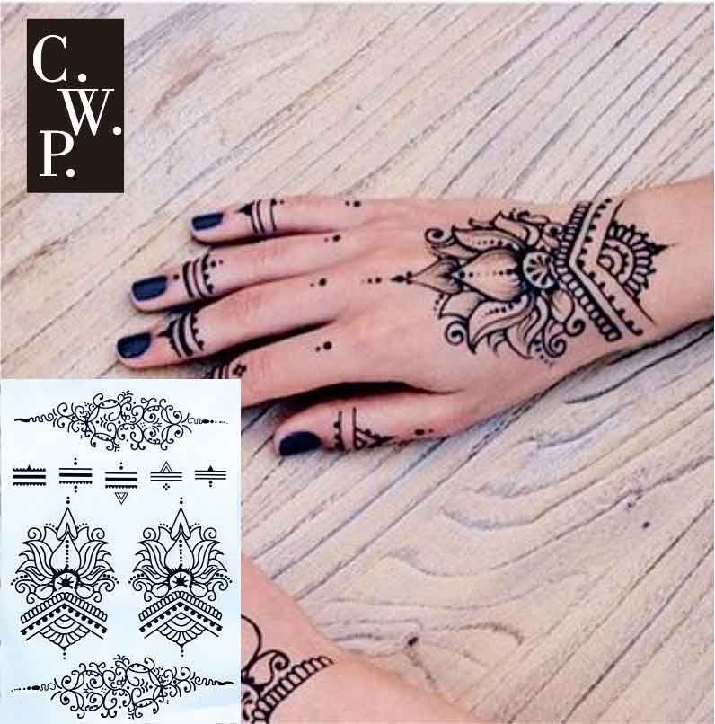 Bh1709 Lotus Wrist Black Henna Temporary Tattoo With Modern Henna Pattern Tattoo For Hands Stickers Temporary Tattoo Shop Temporary Tattoo Spray From