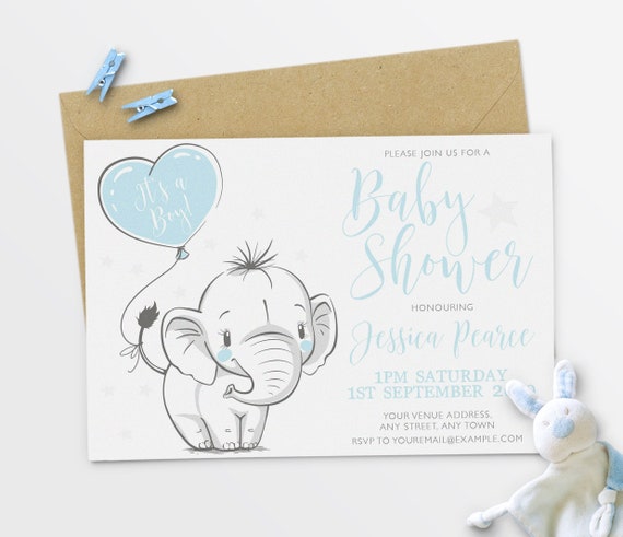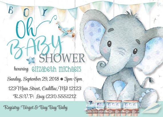 Elephant Baby Shower Invitation Boy Baby Shower Invitation