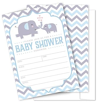 25 Fill In Blank Baby Shower Invitations W Envelopes Blue Elephant
