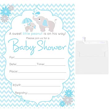 Blue Elephant Boy Baby Shower Invitations 20 Count With Envelopes